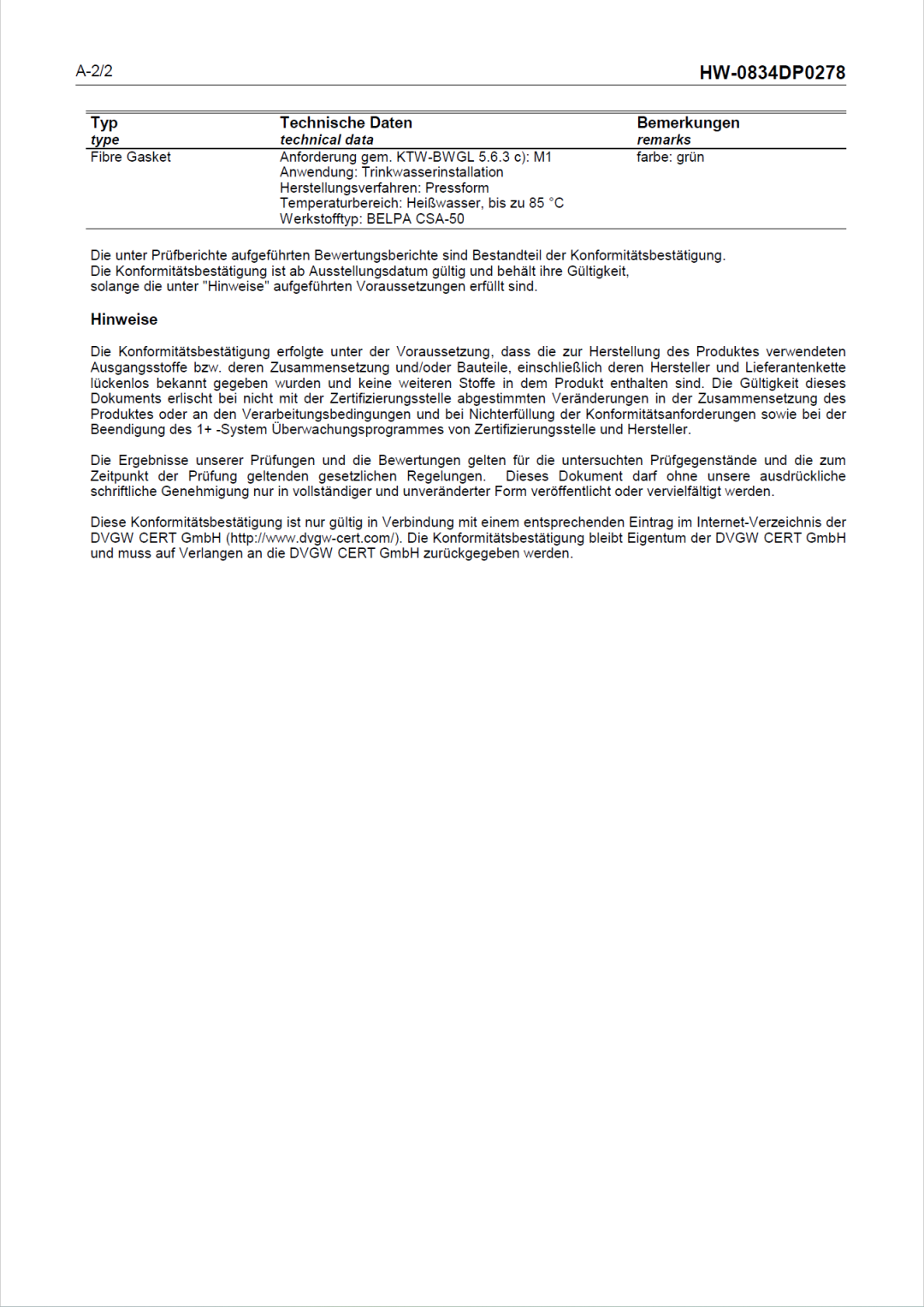 目前,我司合作伙伴西班牙標(biāo)牌BELPA CSA-50無石棉板已獲得KTW-BWGL認(rèn)證。